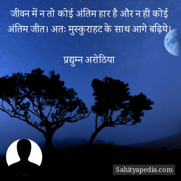 जीवन में न तो कोई अंतिम हार है और न ही कोई अंतिम जीत। अतः मुस्कुराहट के साथ आगे बढ़िये।