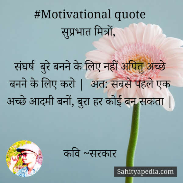 संघर्ष बुरे बनने के लिए नहीं अपितु अच्छे बनने के लिए करो | अत: सबसे पहले एक अच्छे आदमी बनों, बुरा हर कोई बन सकता |