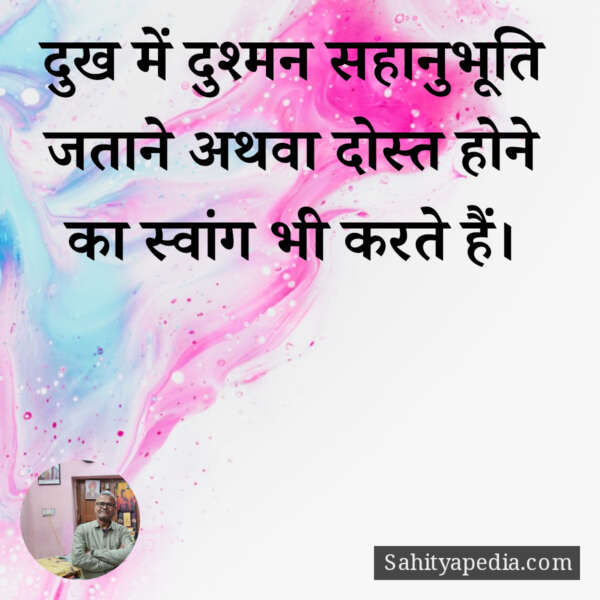 दुख में दुश्मन सहानुभूति जताने अथवा दोस्त होने का स्वांग भी करते हैं।