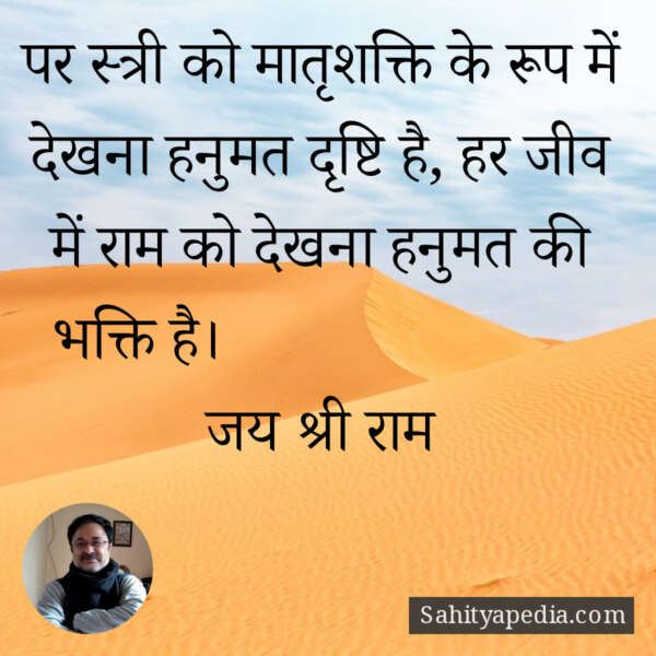 पर स्त्री को मातृशक्ति के रूप में देखना हनुमत दृष्टि है, हर जीव में राम को देखना हनुमत की भक्ति है। जय श्री राम