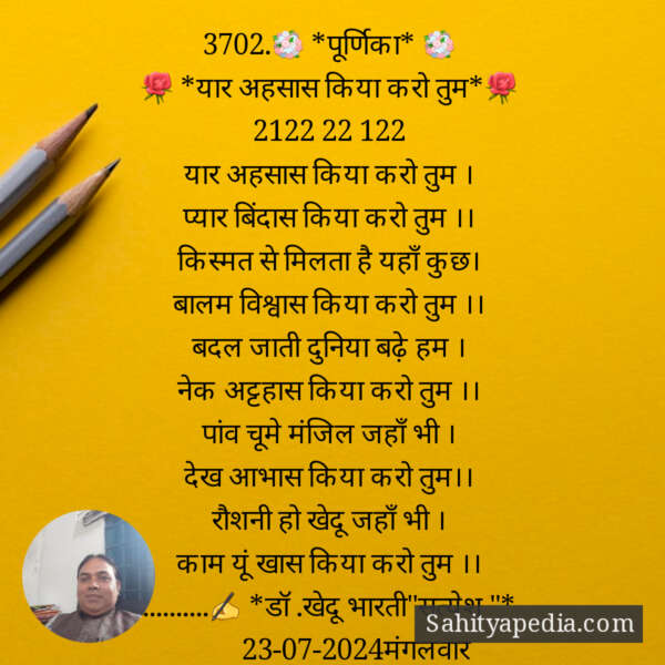 рдпрд╛рд░ рдЕрд╣рд╕рд╛рд╕ рдХрд┐рдпрд╛ рдХрд░реЛ рддреБрдо ред