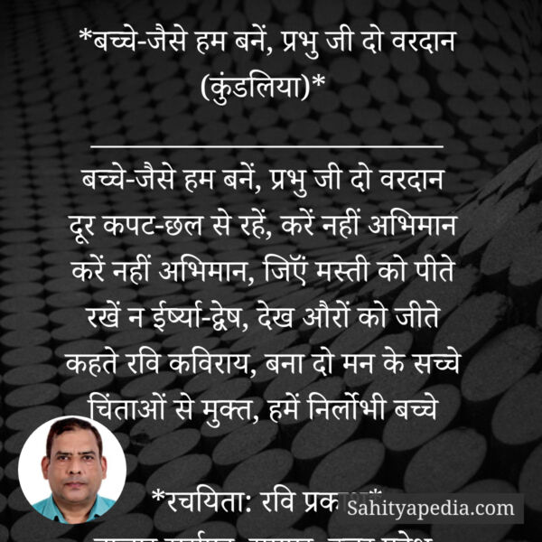 बच्चे-जैसे हम बनें, प्रभु जी दो वरदान (कुंडलिया)