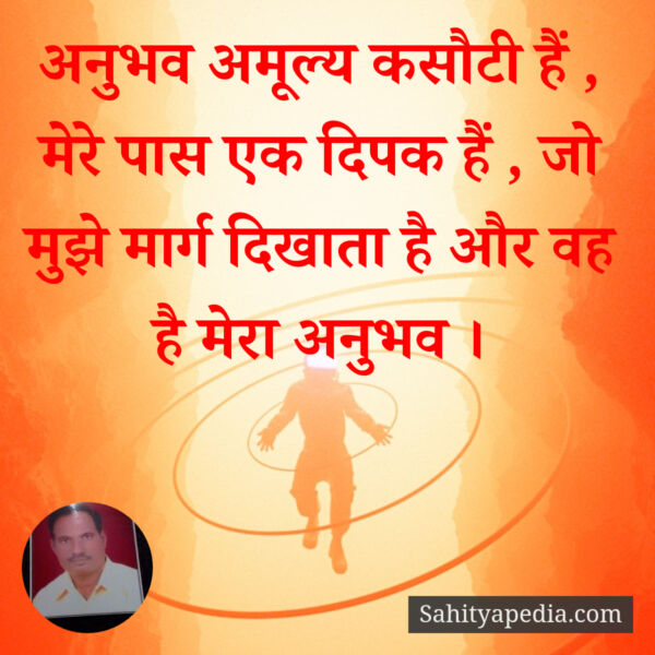अनुभव अमूल्य कसौटी हैं , मेरे पास एक दिपक हैं , जो मुझे मार्ग दिखाता है और वह है मेरा अनुभव ।