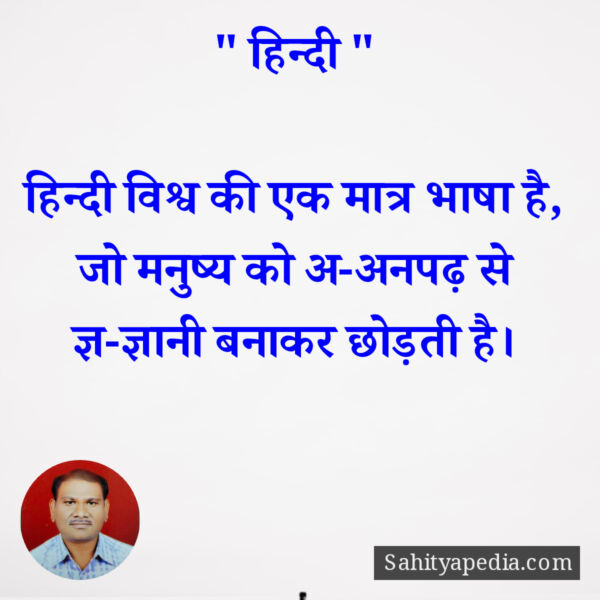 हिन्दी विश्व की एक मात्र भाषा है, जो मनुष्य को अ-अनपढ़ से ज्ञ-ज्ञानी बनाकर छोड़ती है।