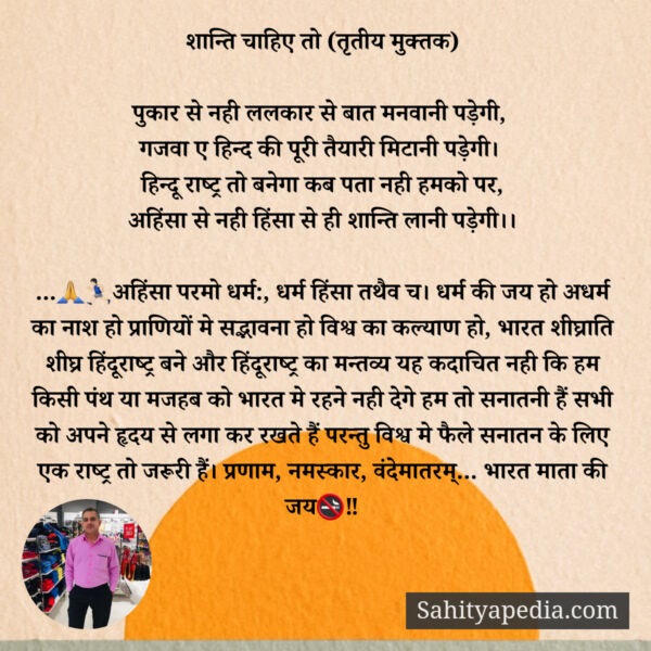 शान्ति चाहिए तो (तृतीय मुक्तक)