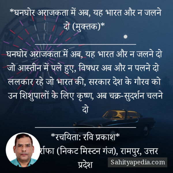 घनघोर अराजकता में अब, यह भारत और न जलने दो (मुक्तक)