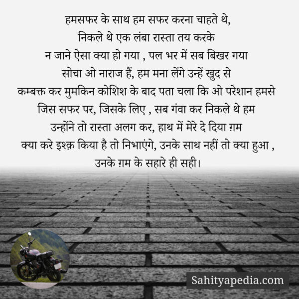 उन्होंने तो रास्ता अलग कर, हाथ में मेरे दे दिया ग़म