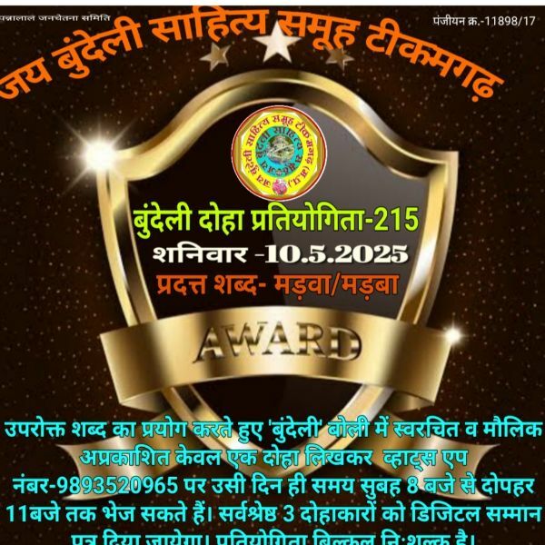 * बुंदेली दोहा प्रतियोगिता -215* दिनांक -10.5.2025