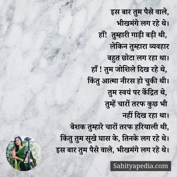 इस बार तुम पैसे वाले, भीखमंगे लग रहे थे।