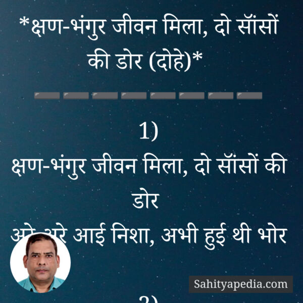 क्षण-भंगुर जीवन मिला, दो सॉंसों की डोर (दोहे)