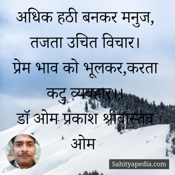 अधिक हठी बनकर मनुज, तजता उचित विचार।