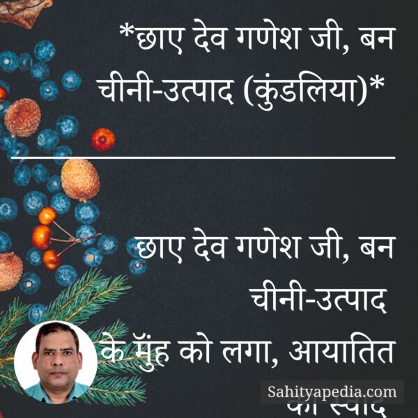 छाए देव गणेश जी, बन चीनी-उत्पाद (कुंडलिया)