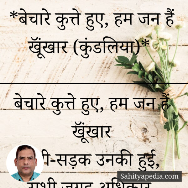बेचारे कुत्ते हुए, हम जन हैं खूॅंखार (कुंडलिया)