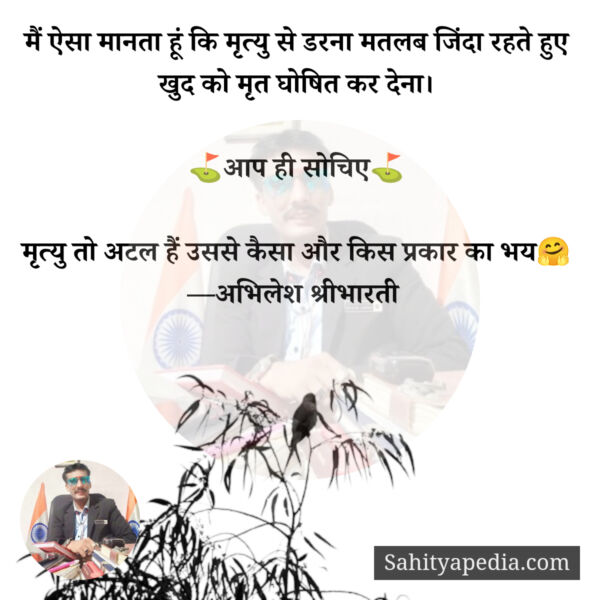मैं ऐसा मानता हूं कि मृत्यु से डरना मतलब जिंदा रहते हुए खुद को मृत घोषित कर देना।