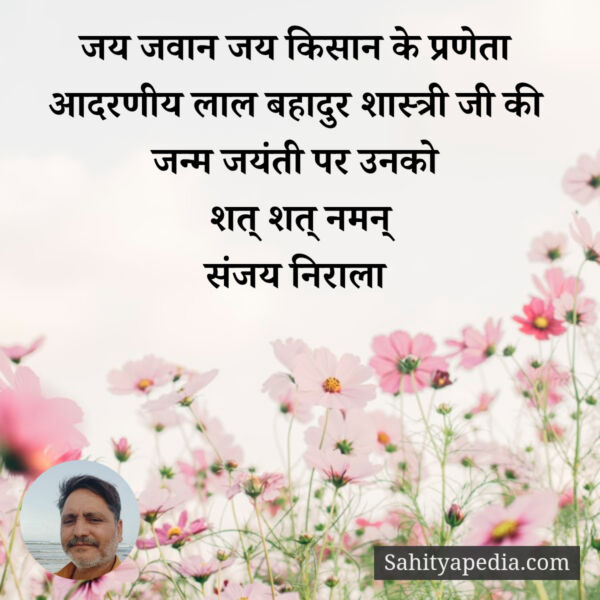 जय जवान जय किसान के प्रणेता आदरणीय लाल बहादुर शास्त्री जी की जन्म जयंती पर उनको