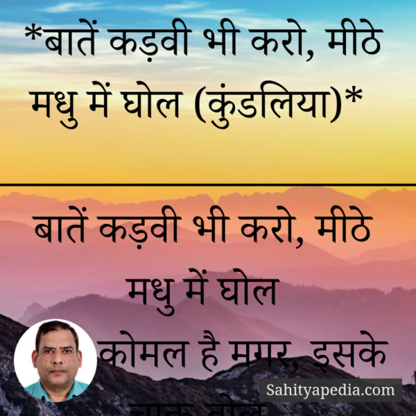 बातें कड़वी भी करो, मीठे मधु में घोल (कुंडलिया)