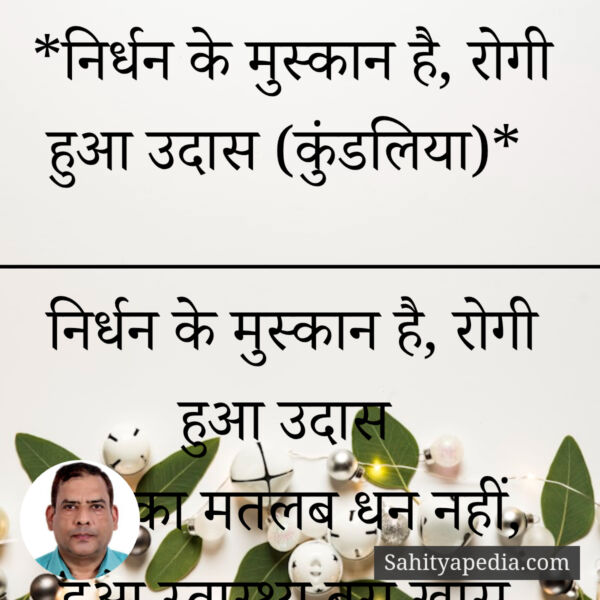 निर्धन के मुस्कान है, रोगी हुआ उदास (कुंडलिया)