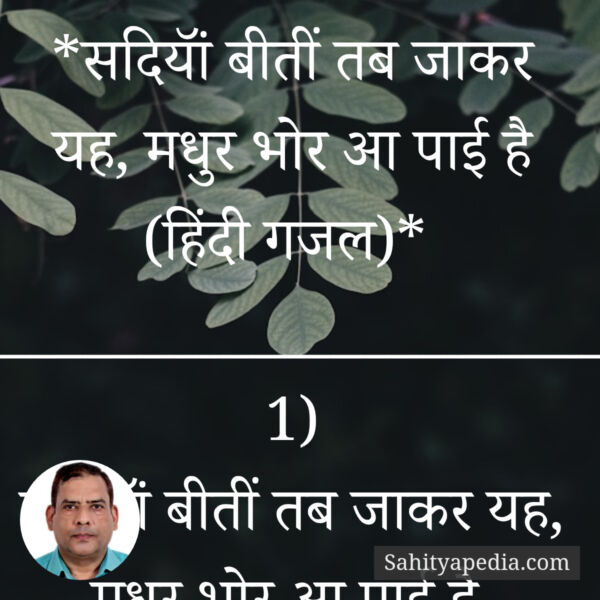 सदियॉं बीतीं तब जाकर यह, मधुर भोर आ पाई है (हिंदी गजल)